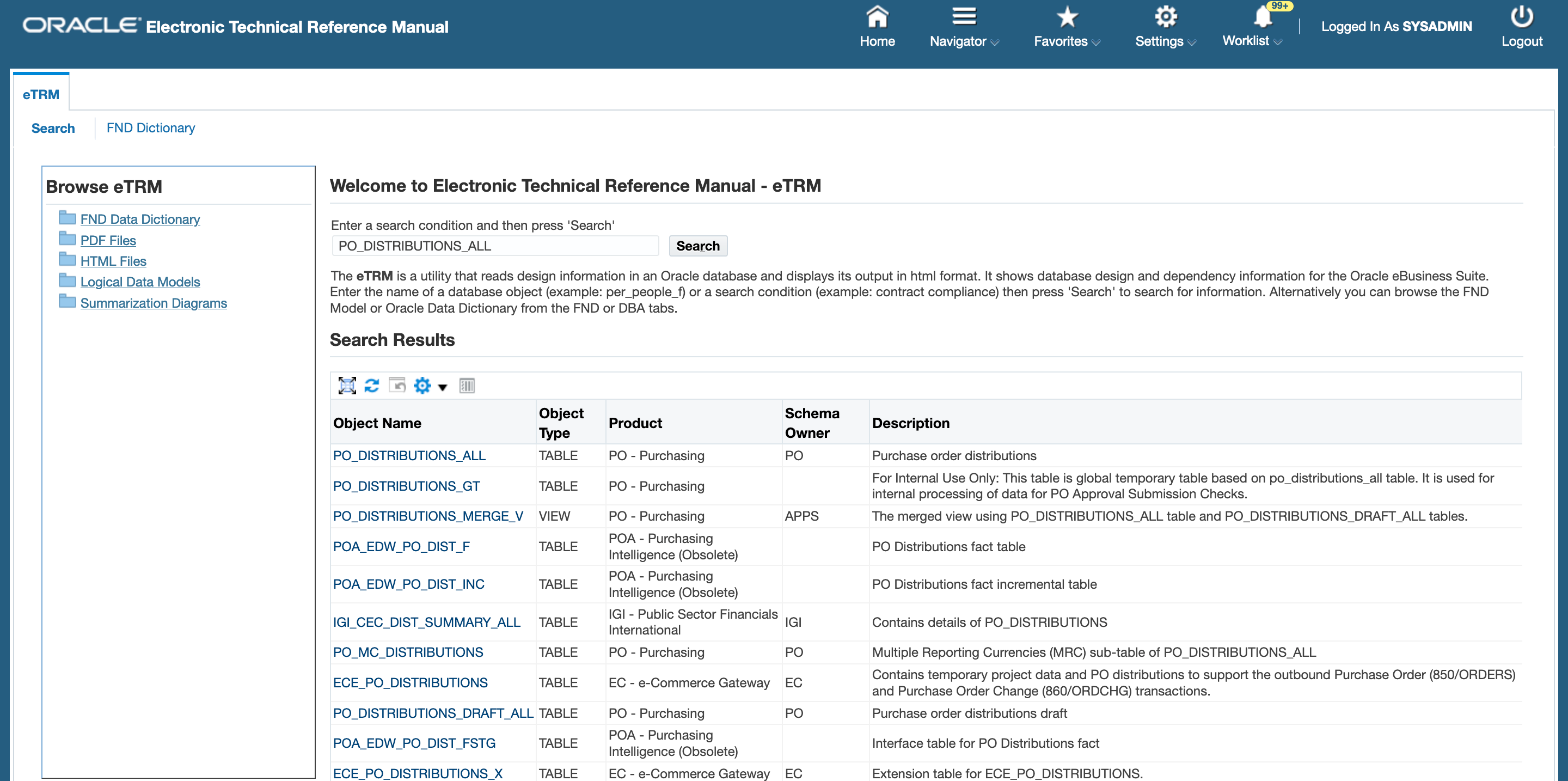 - Browse Database Objects in FND Dictionary