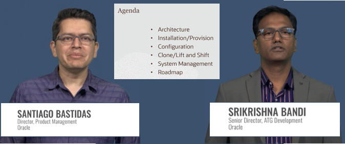 Sanitago Bastidas, Director Product Management, and Srikrishna Bandi, Senior Director ATG Development, present an overview of the Oracle E-Business Suite 12.2 architecture. It then dives into the latest updates for Oracle E-Business Suite installations and cloning. Learn how to administer and configure Oracle E-Business Suite. Hear how to use the Oracle Cloud lifecycle management tool, cloud manager, to perform one-click provisioning, advanced provisioning, backups, and clones of Oracle E-Business Suite 12.2 and 12.1 environments. See how automation can help you lift and shift your on-premise Oracle E-Business Suite instance to Oracle Cloud. This material was presented at Oracle OpenWorld 2019.