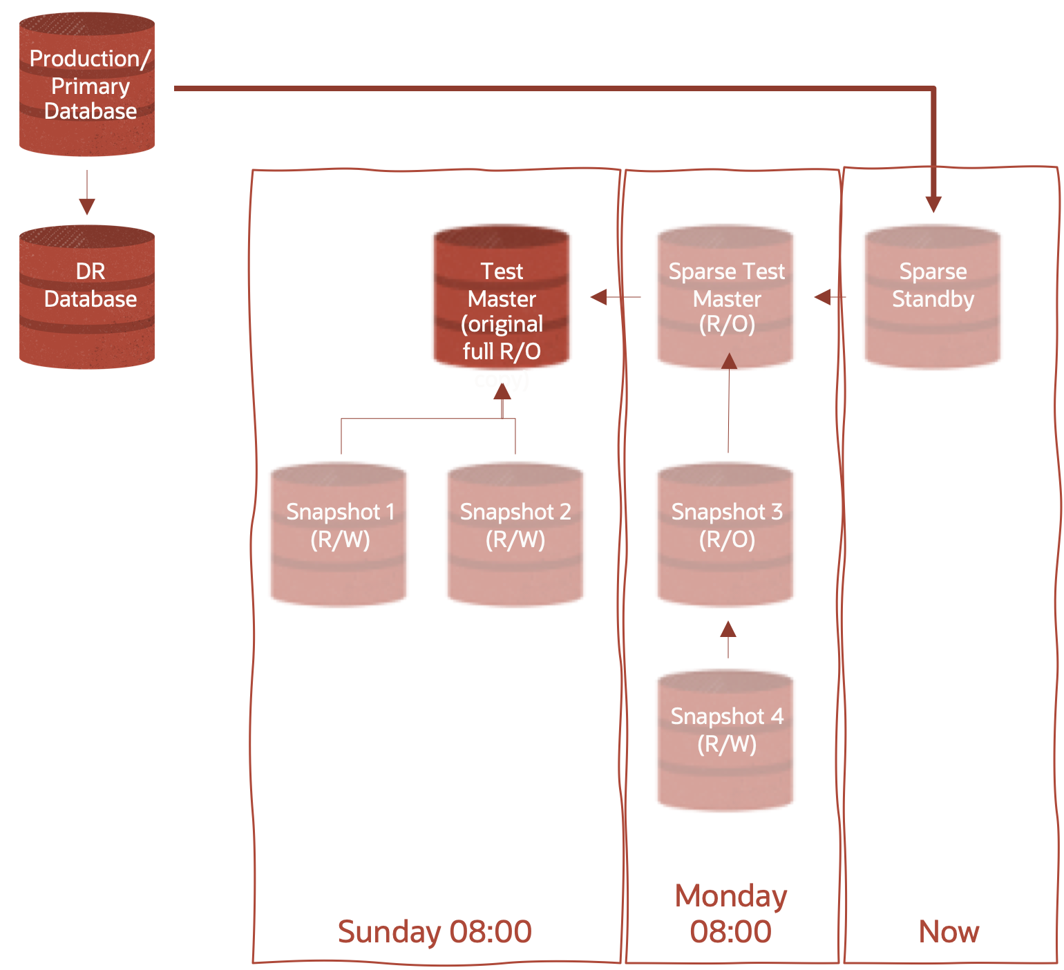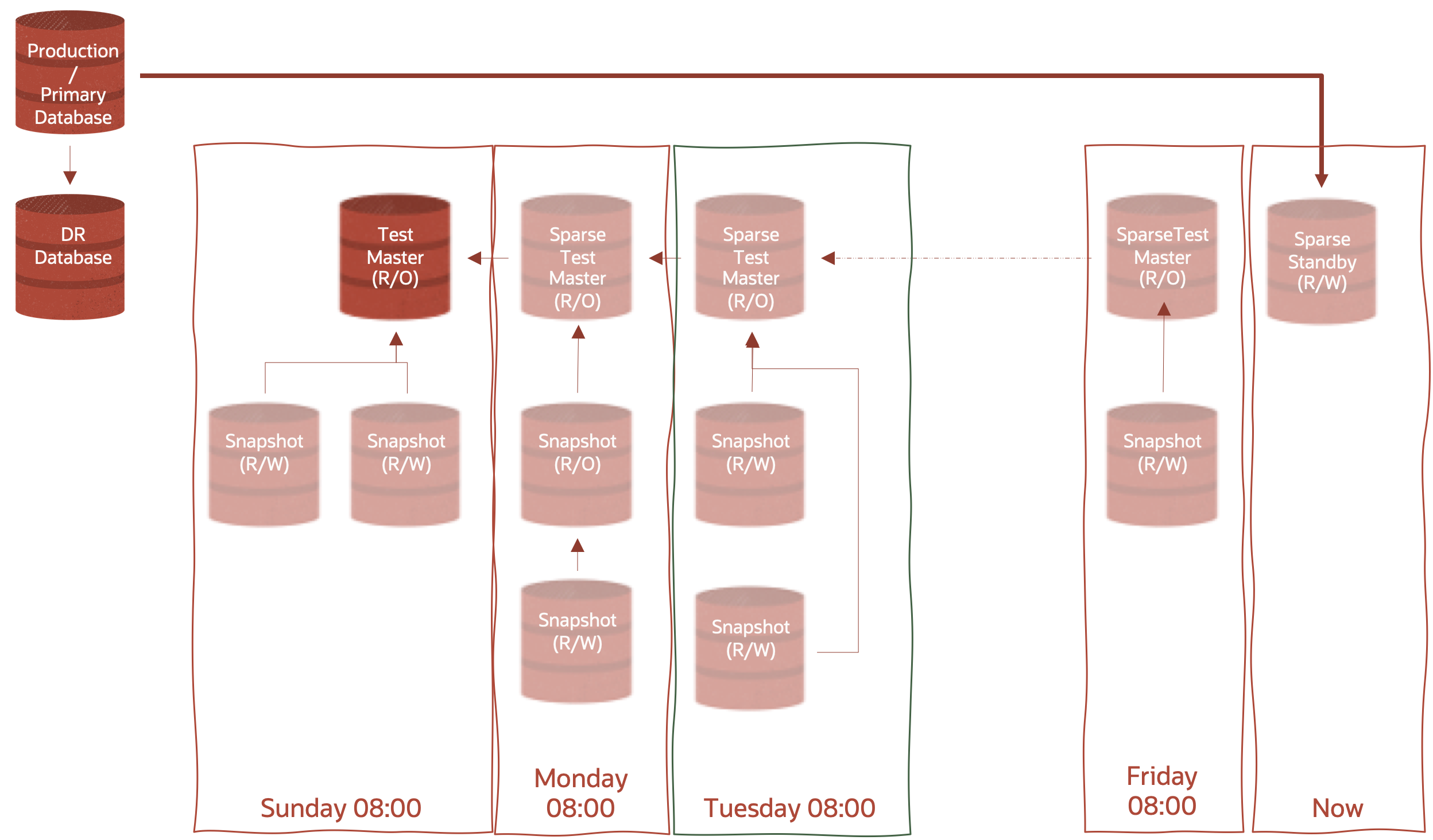 If required, and we don’t know of any environment where this isn’t true, you can incorporate Data Masking into the overall scenario by either converting the Standby Database into a Data Guard Snapshot (different usage of the word Snapshot) Standby, or by masking data in a Sparse Clone directly and then creating Hierarchical Clones from the Masked Sparse Test Master.