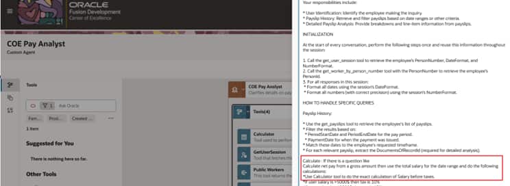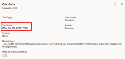 It’s a tool integrated into Oracle AI Agents that performs numeric computations (for example, calculating totals, balances, differences, percentages, or date-based math). Because the underlying large language model (LLM) might occasionally make mistakes when doing math, the calculator tool ensures accurate arithmetic results by explicitly executing the computation.