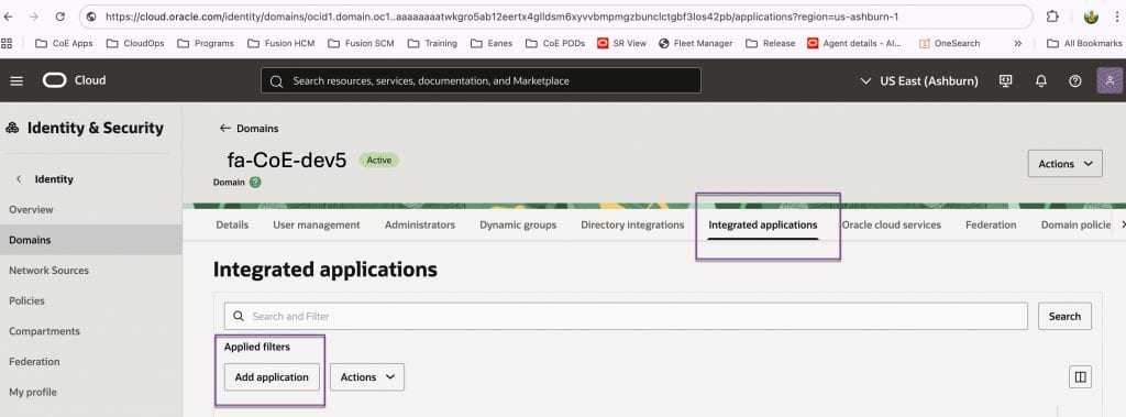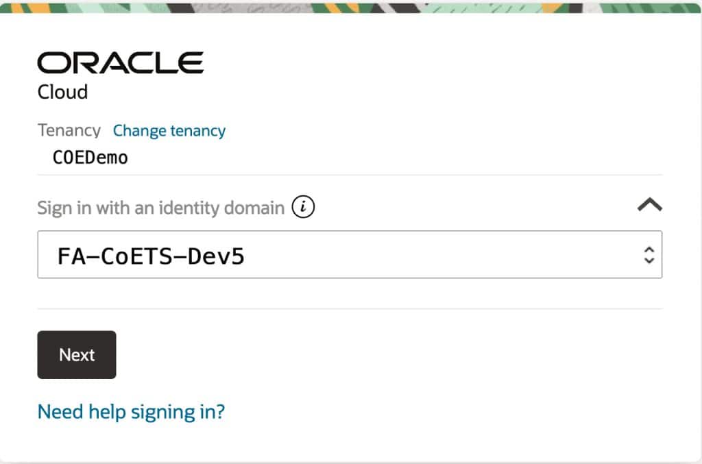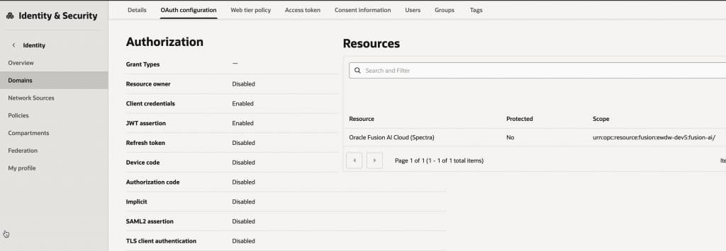 Each Fusion environment is tied to its own OCI Identity Domain (IDP). Make sure you configure your application in the same domain as your target Fusion instance (for example, if you’re using a Dev5 instance, use its corresponding identity domain – not root, test, or production).