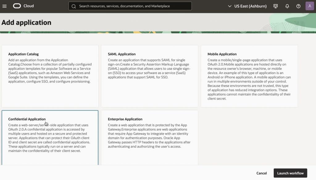 3- Create a new application, choose Confidential Application, and go with the default settings for now – you can update them later.