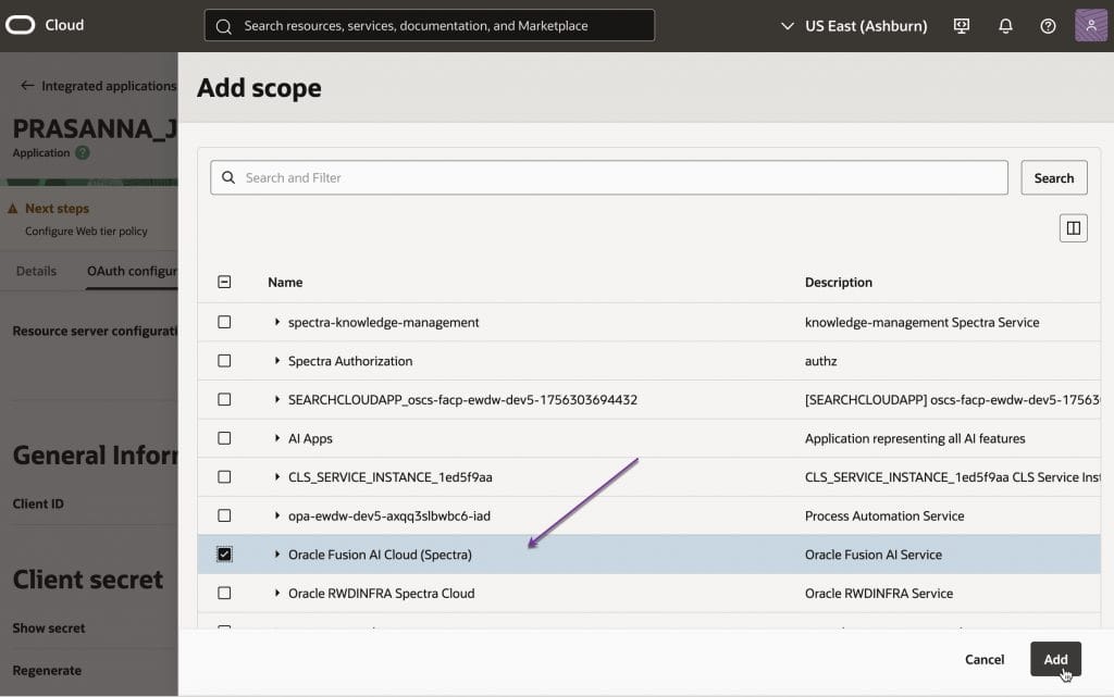 6- Add scopes/specific resources—limit access to Fusion AI Services only.