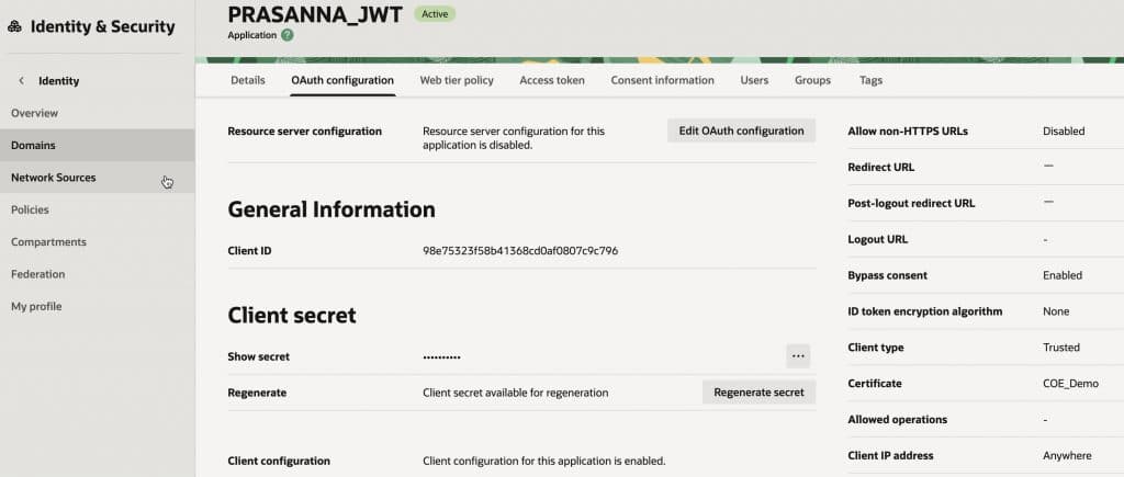 This concludes the set up for confidential/ trusted client application in OCI Identity for your target Fusion environment. Once created, keep these essentials ready: