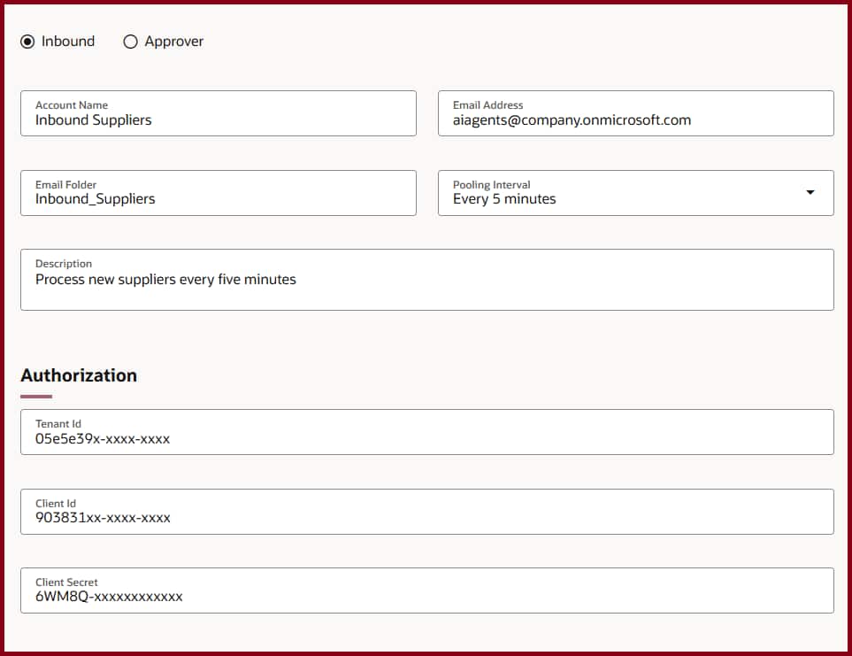 Once your mailbox is ready, you need to tell Oracle Fusion AI Agent Studio how to access it.