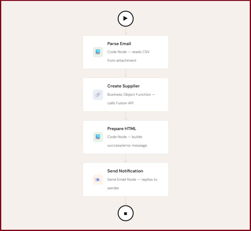 In today’s fast-paced business environment, manual data entry is a bottleneck. Imagine a world where an inbound email with attachment(s) automatically triggers a workflow to create supplier records in your ERP system. With Oracle Fusion AI Agent Studio, this is not just possible — it’s easy to configure.