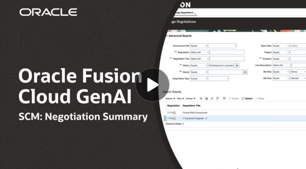 This one-minute demo shows how GenAI can simplify and speed up the creation of a supplier negotiation document in Oracle Fusion Cloud Procurement. It features a strategic sourcing manager working on a Request for Quote (RFQ). With just a few clicks, they can automatically generate clear, accurate abstracts. This reduces manual effort, boosts efficiency, and improves communication with suppliers.