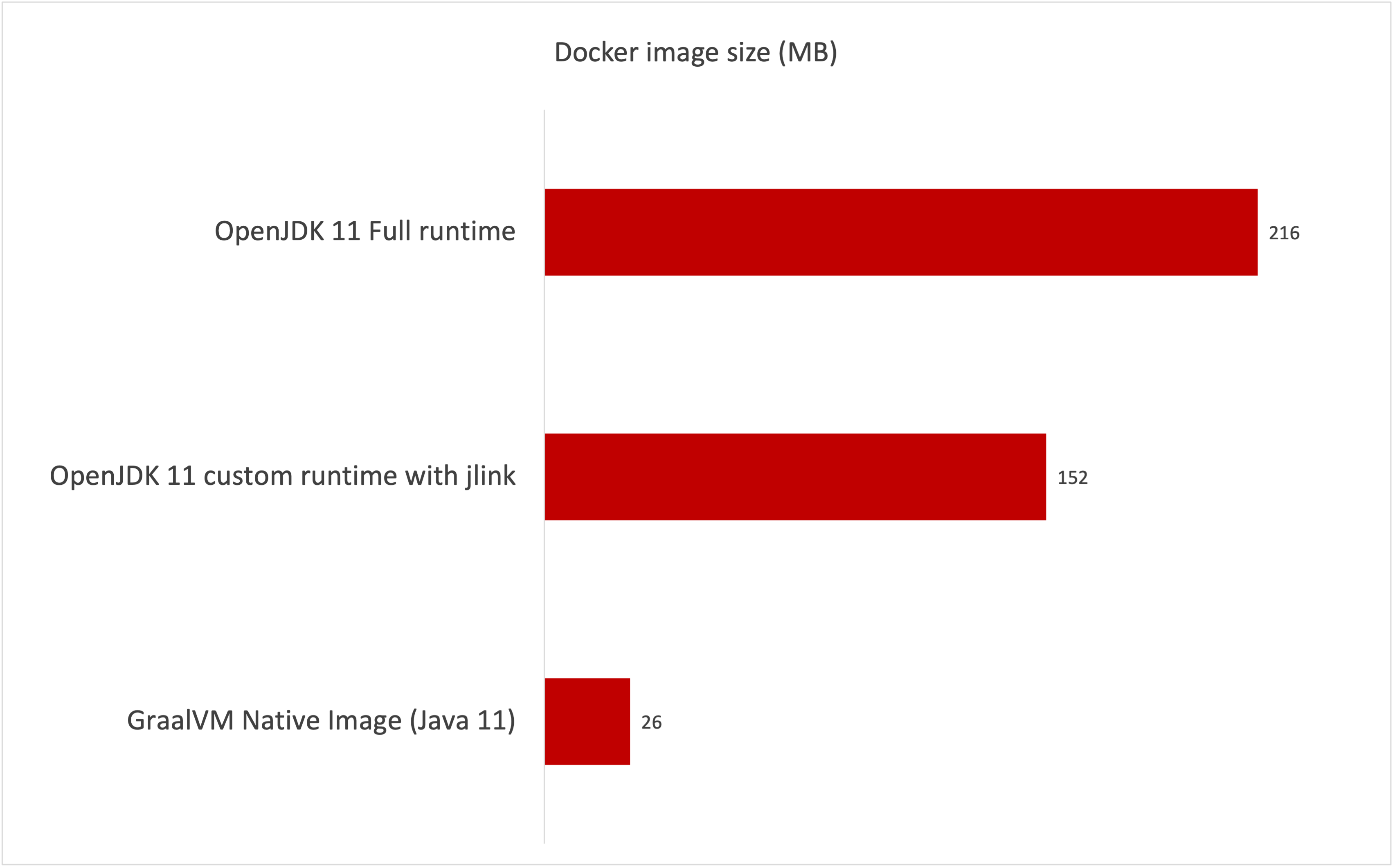 A native executable includes all necessary runtime libraries so it can be put into a `FROM scratch` container. For a basic microservice, the container size can be as low as 20-25 MBs.