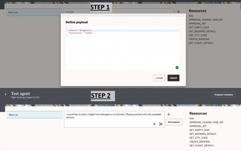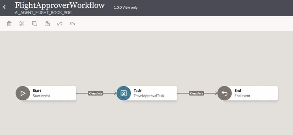 In the flight booking scenario, an “Approval Required” outcome from the Decision service triggers a workflow that pauses execution until approval is provided, ensuring adherence to policy. A structured form presents all relevant details—employee information, flight selection, fare, and context—allowing quick review. This workflow is exposed as a tool, enabling the AI agent to invoke it dynamically and seamlessly incorporate human oversight into the automation process. The quickest way to implement HITL is to leverage Oracle Recipes, each designed around common enterprise approval patterns. Since every recipe is fully editable, teams can start with a ready-made foundation and tailor it as needs evolve. Refer to the Oracle Blog for more details.