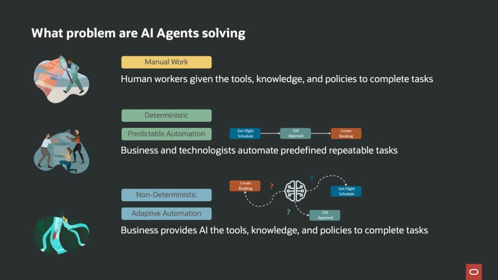Accelerate agentic automation – Oracle Integration Cloud enables rapid adoption by allowing reuse of existing integrations as tools, powered by strong enterprise connectivity and a diverse toolkit.