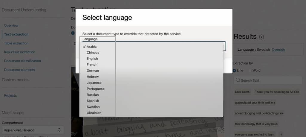 OCI Document Understanding officially showcases support for 12 languages. However, as demonstrated in this implementation, documents containing Finnish text were successfully extracted. By overriding the language configuration (for example, selecting Swedish), the service effectively extracts text across multiple unlisted languages. This technique enables broader multilingual coverage beyond the documented list.
