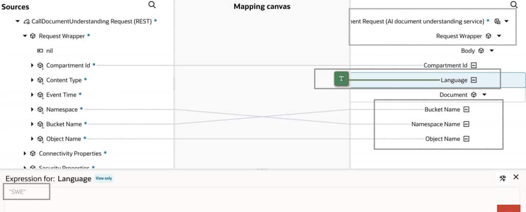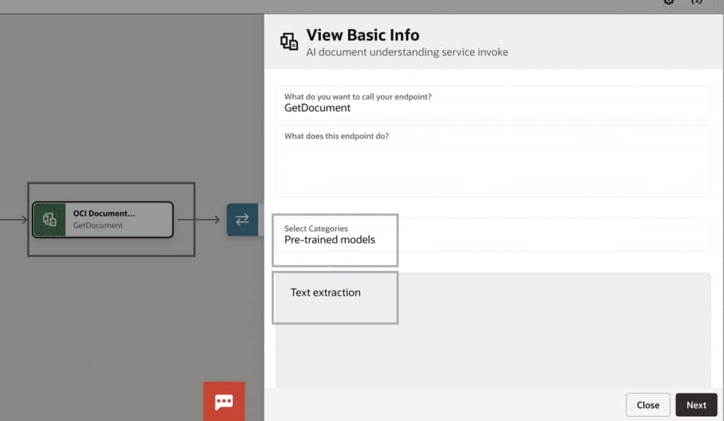 The received bucket information is passed to the OCI Document Understanding Adapter in OIC. The adapter processes the document and returns the extracted content.