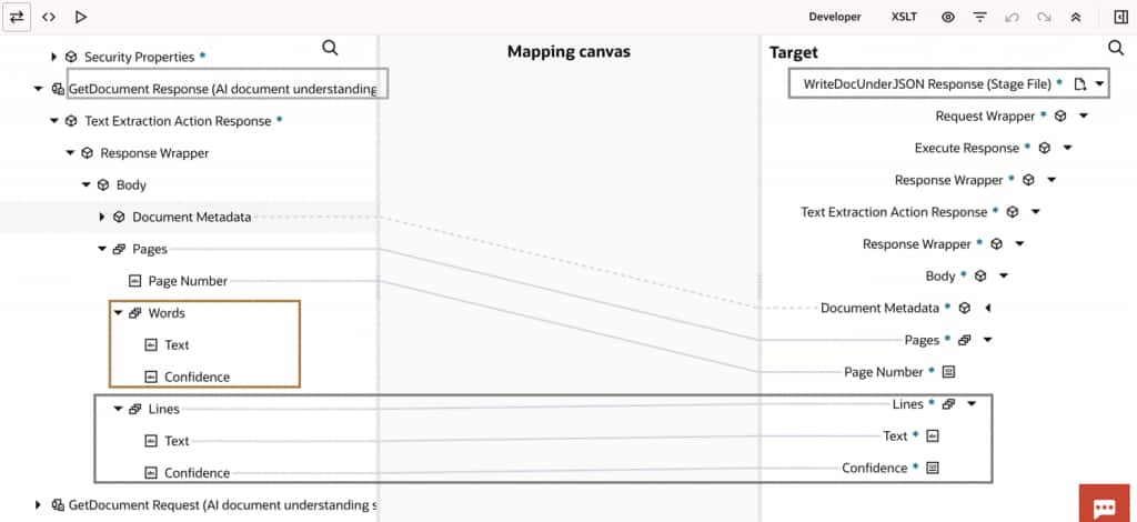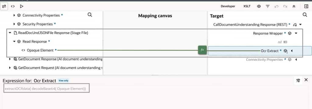 The response from the Document Understanding Adapter is written to an OIC Stage File for downstream processing and transformation.