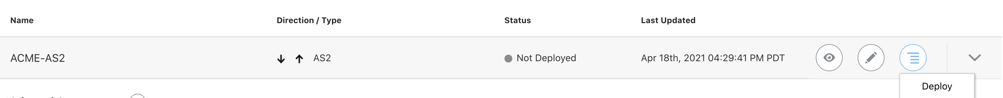 Finally, you can deploy the Transport once the configurations are completed. When you deploy, your Integrations will be activated and the Transport will be deployed for processing runtime transactions. Once you create and deploy your agreements then you can manage all transactions from the B2B Tracking UIs.