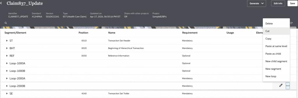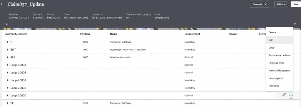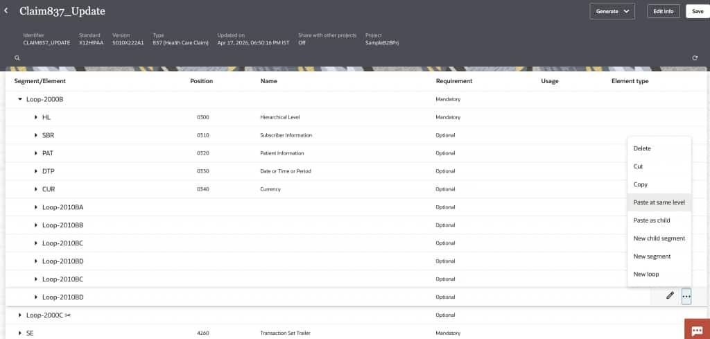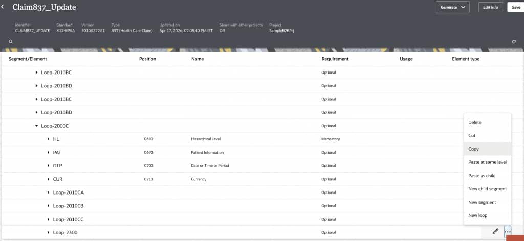 X12 HIPAA 837 documents are standard electronic healthcare claim files used to send billing information from providers to payers. We can process these claims in OIC B2B using our out-of-the-box schemas. However, there is a little bit of preparation that is required to ensure all the variations of a claim file can be handled by our schema. So, let’s take a look at them.