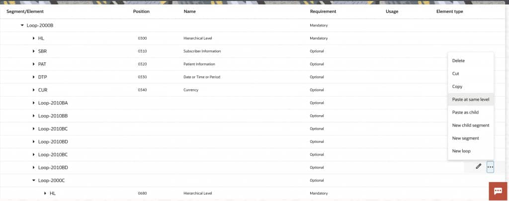Loops 2000A, 2000B, and 2000C are typically hierarchical in their usage. However, the out-of-the-box schema has them as sibling rather that child loops. Let’s move them.