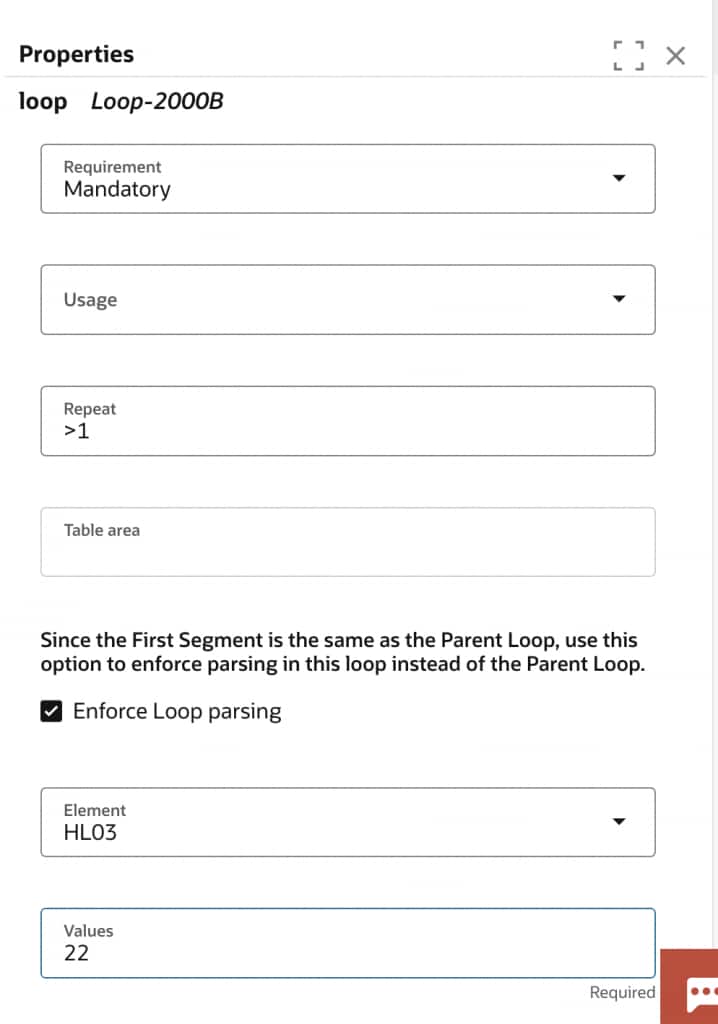 Claims files typically have hierarchical HL loops that represent different entities involved in the claims process. So, we can configure the expected HL03 values in the respective loops.