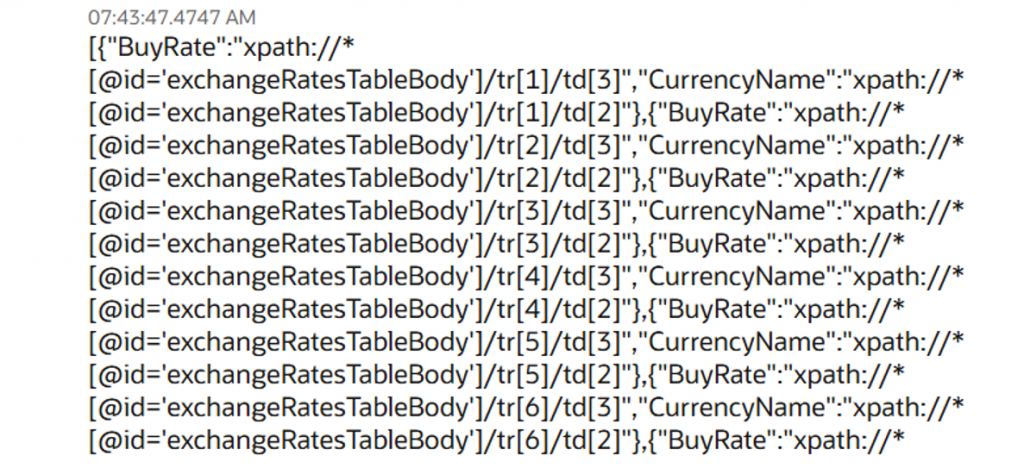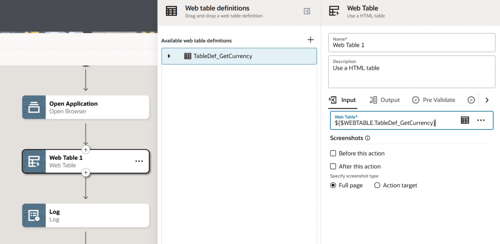 In our use case, we need only the Buy Rate for the respective Currency Name, but if you need more columns for business automation, you must select all required columns. Now we will be using the Web Table activity, where an already defined web table will be used. In the output section, one variable will be generated automatically that will hold the current entire table elements.
