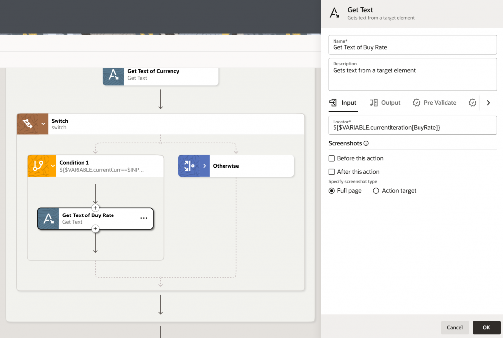 Whenever the condition is fulfilled, we will be copying the BuyRate of the current iteration into the output variable. Once done, save the robot. Every time you save a robot, Oracle Integration validates the robot and identifies its errors, if any exist. After you finish building a robot, activate it. Afterward, you can test and run the robot.