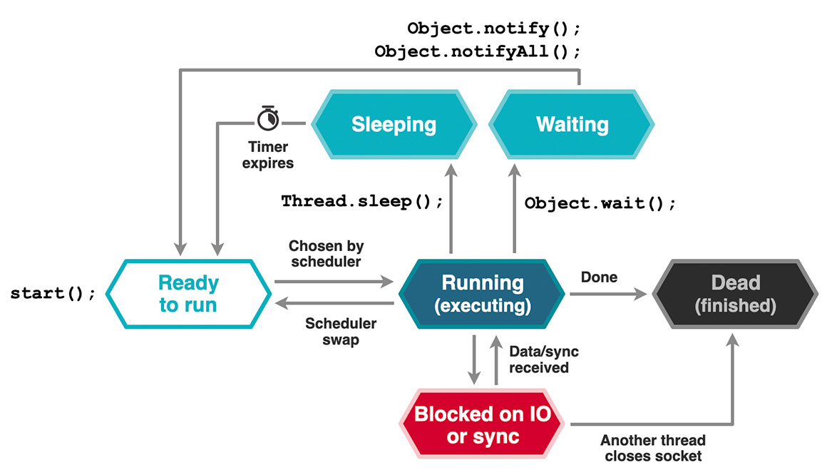• The thread can encounter a blocking call, for example, an I/O operation. That is how I/O connects with virtual threads.
