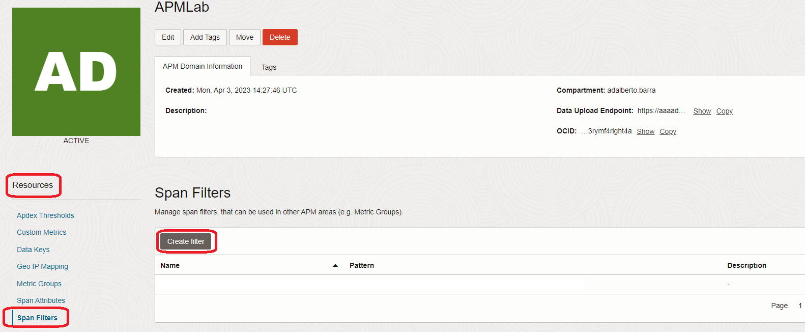 Primeiro vamos criar um Span Filter. Em Resources, clique em Span Filters e depois em Create Filter