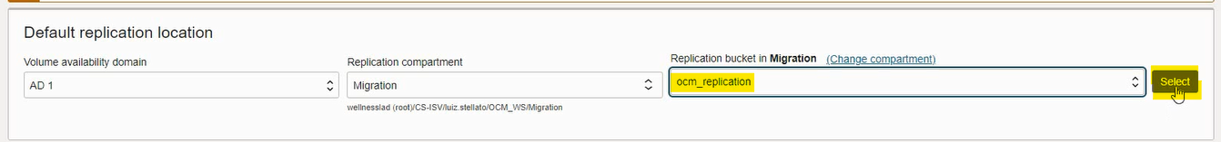 Choose the replication bucket, click Select and Next: