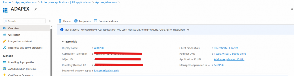 Uma vez criada, o Azure irá gerar um client ID, mantenha ele por perto, usaremos para configuração no APEX.