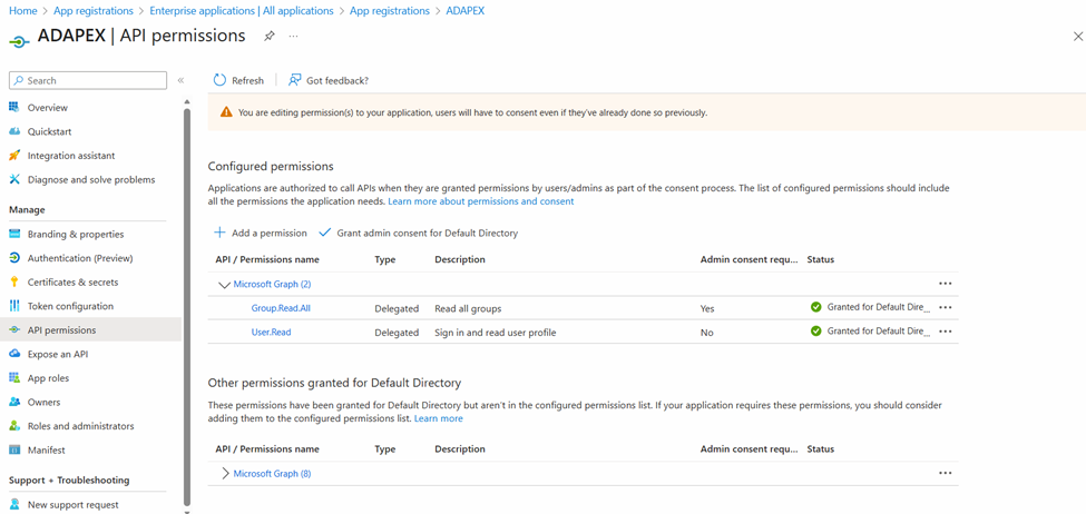 Garanta que está marcada como “Granted”. Pode ser necessário envolvimento do administrador Azure.