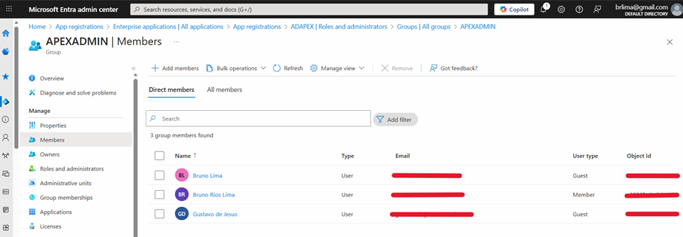 Por fim, uma vez feito isso, em “Enterprise Applications” navegue até o submenu de “Members” na seção de grupos. Em seguida, atribua os grupos ou usuários à aplicação registrada.