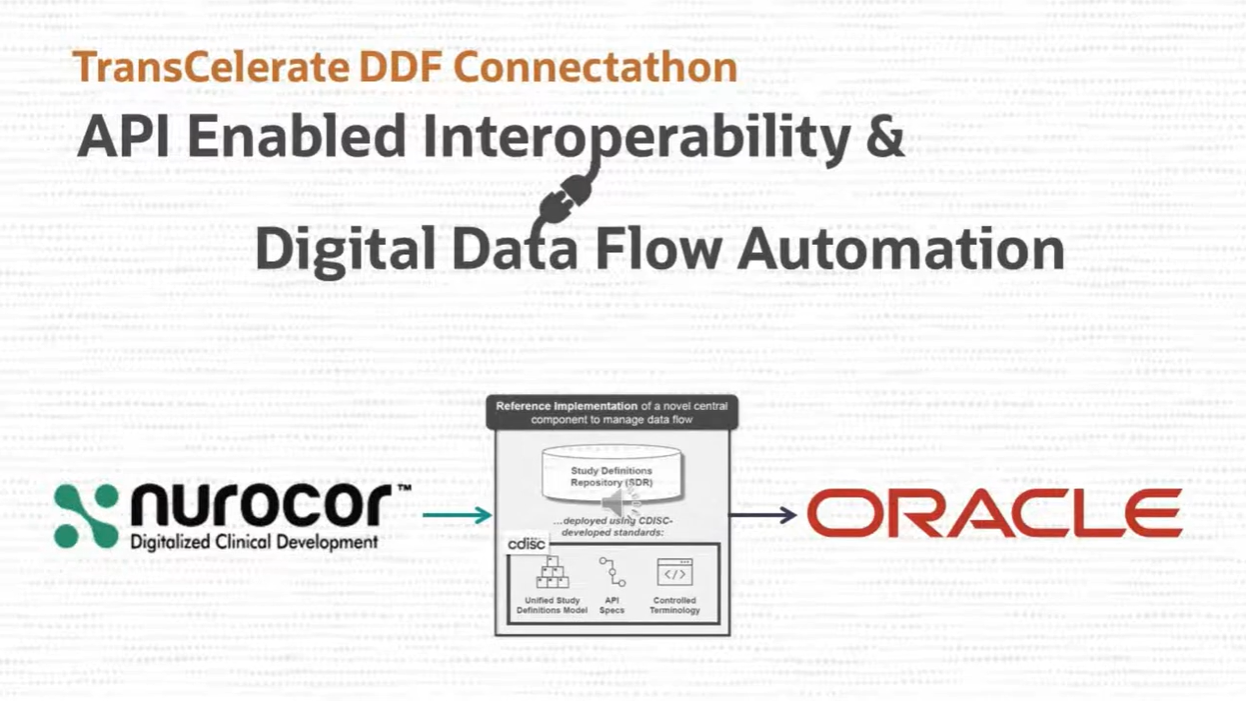 ・プレゼンテーション最後にTransCelerateのDigital Data FlowイニシアチブのNurocor(Meta Data Repository)とOracleによるデータフロー自動化のデモビデオをご紹介しました。