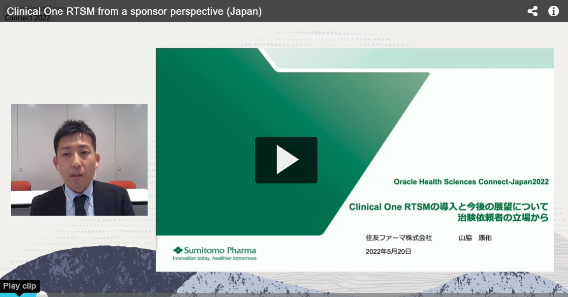 【住友ファーマ様によるClinical One RTSM導入事例 「Clinical One RTSMの導入と今後の展望について 治験依頼者の立場から」】