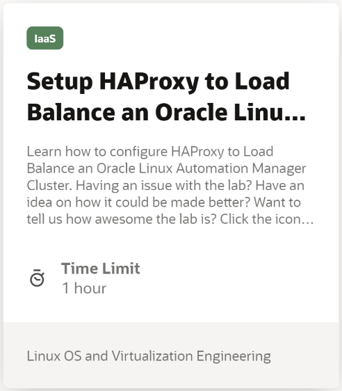 Simple steps to perform the labAlthough there are many load balancer options, the lab will leverage HAProxy. HAProxy, or High Availability Proxy, is an application layer (Layer 7) load balancer and high-availability solution that you can use to implement a reverse proxy for HTTP and TCP-based Internet services. The lab provides steps to install HAPRoxy, configure HAProxy, and configure Oracle Linux Automation Manager to work behind a load balancer or proxy.