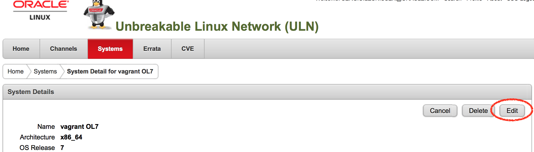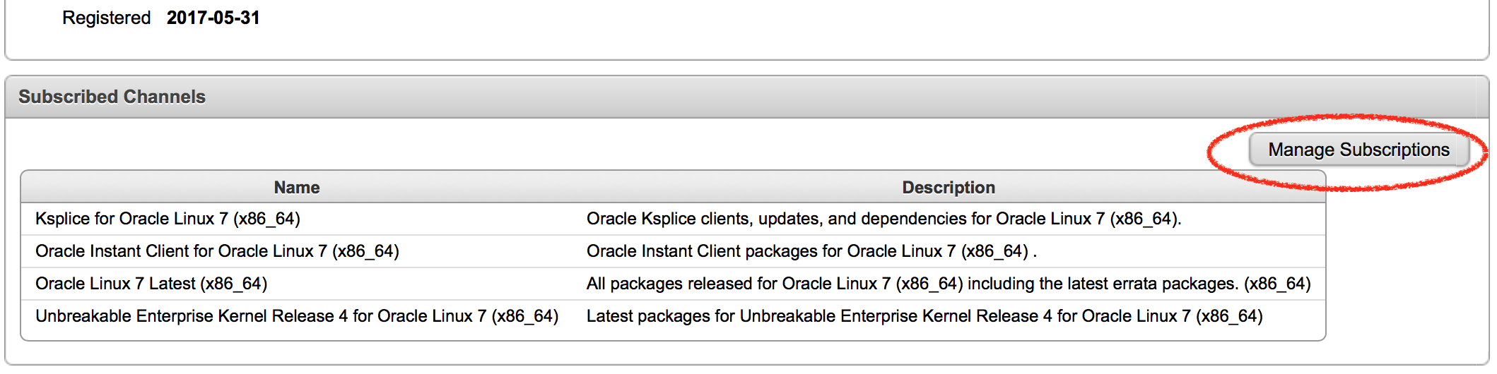 - Follow these steps from the documentation: Registering an Oracle Linux 6 or Oracle Linux 7 System