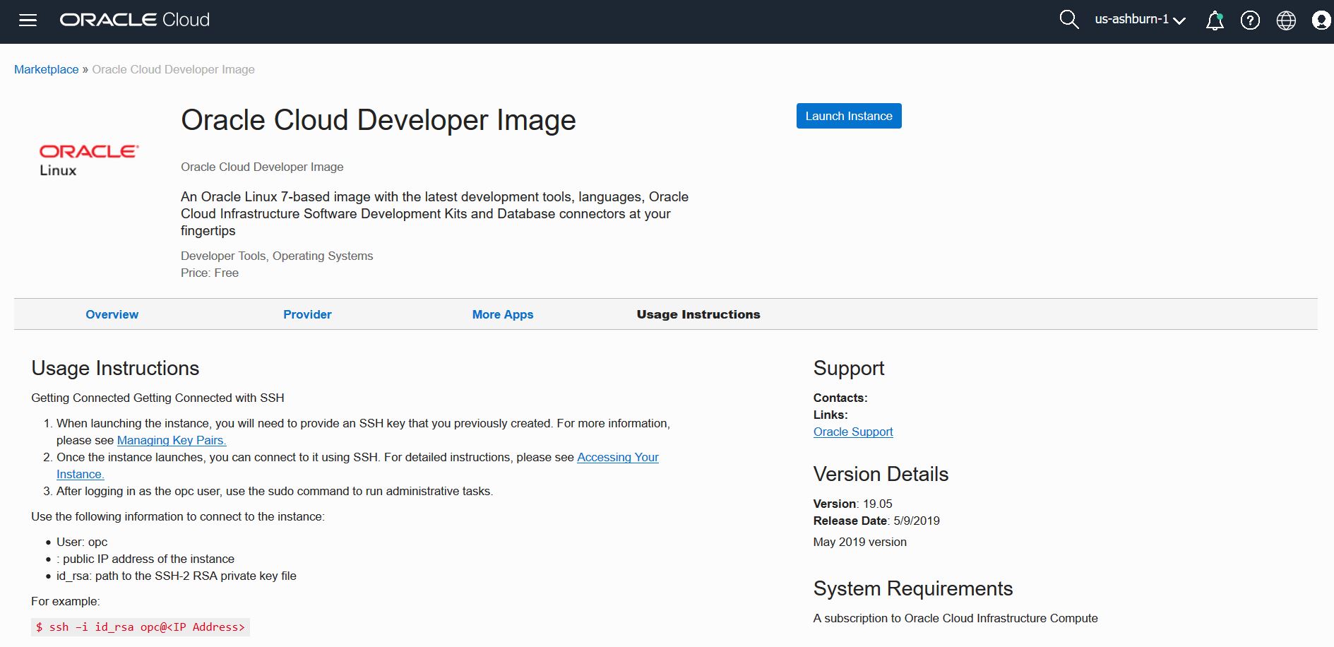 - Oracle Cloud Marketplace: Oracle Cloud Developer Image
