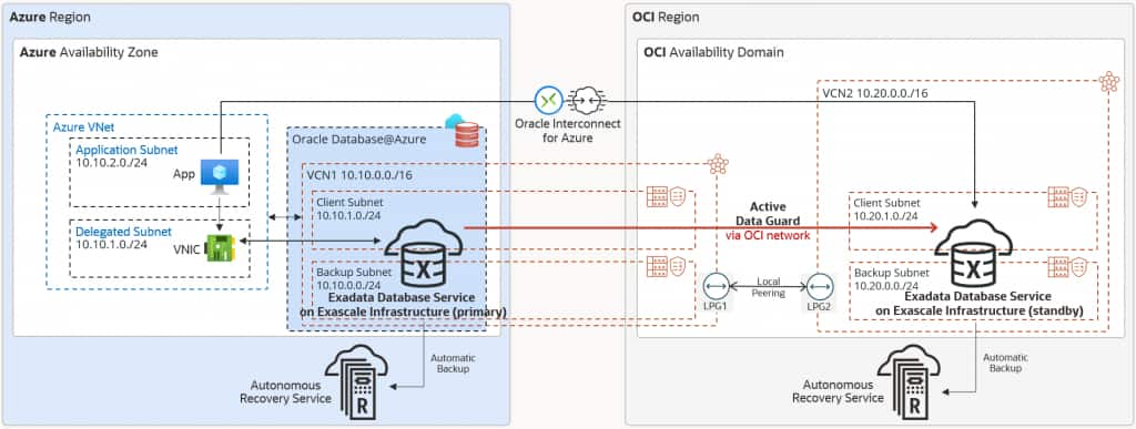 This blog post describes the Oracle Active Data Guard setup on Oracle Exadata Database Service on Exascale Infrastructure across Oracle Database@Azure and Oracle Cloud Infrastructure in the same region. The same solution applies similarly to Oracle Exadata Database Service on Dedicated Infrastructure.
