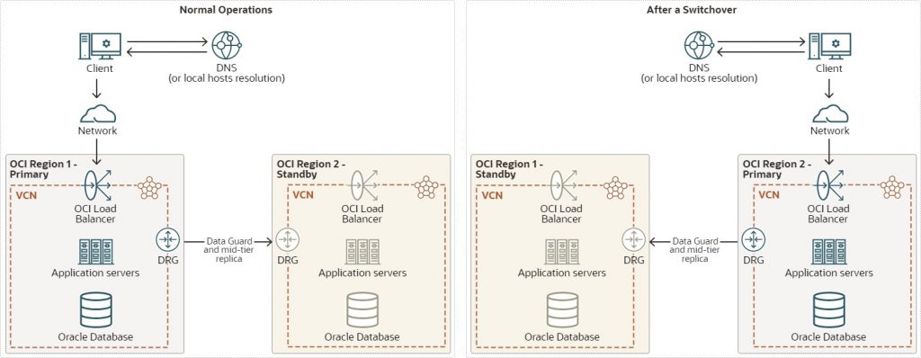 The Oracle solution playbook “Implement Mid-tier Replication in an OCI Disaster Recovery Architecture” provides an analysis of the different file system replication approaches used by middleware tiers in active-passive Disaster Recovery configurations. It describes how to synchronize middle-tier file systems across regions in OCI to ensure consistency and minimize downtime during failover or switchover events.