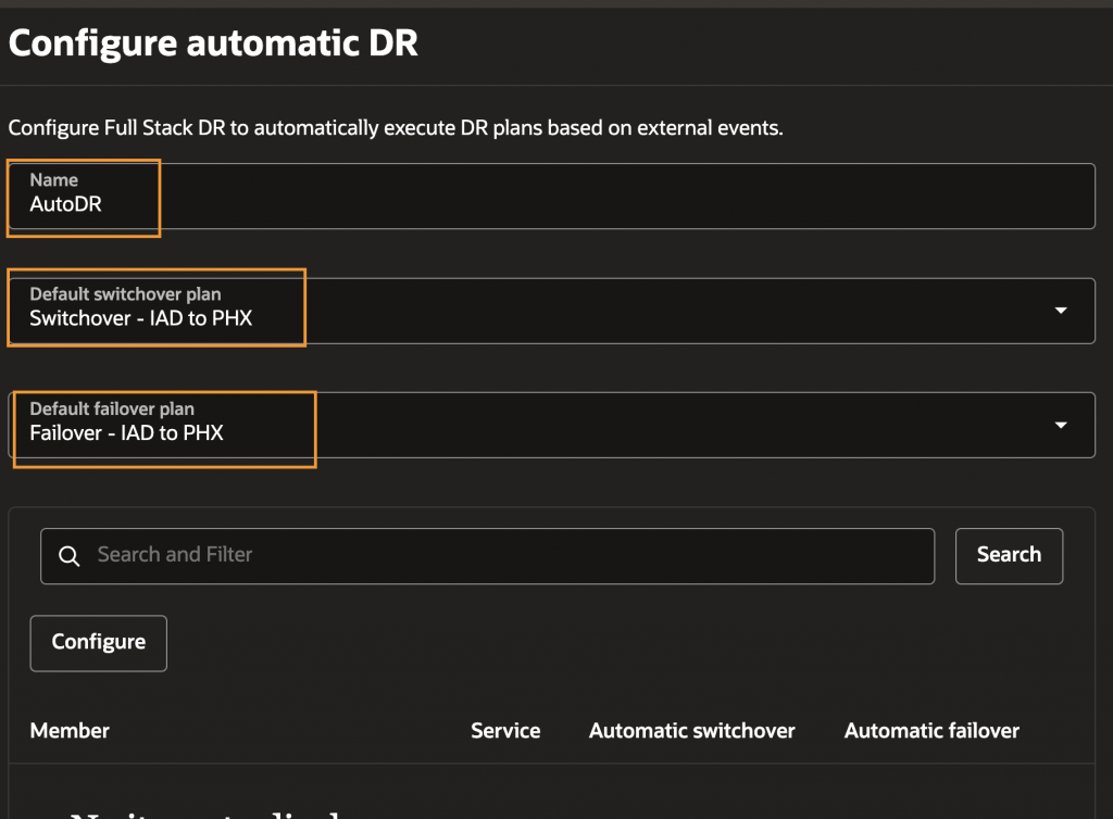 With Automatic DR, administrators can rely on OCI Full Stack DR to orchestrate recovery operations automatically, improving recovery time and ensuring business continuity without manual intervention. For more details, refer to the Automatic DR Configuration documentation.