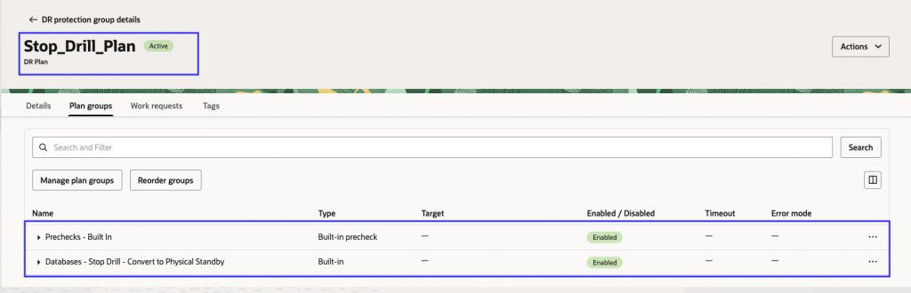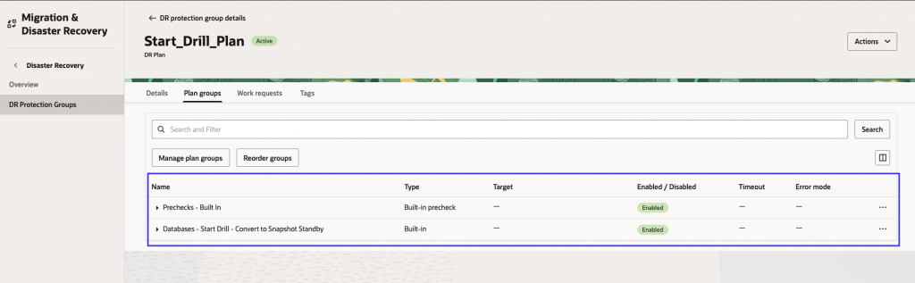 3. DR Drill plans – Built-in Plan groups for Oracle Database Services – ExaDB-D and ExaDB-C@C