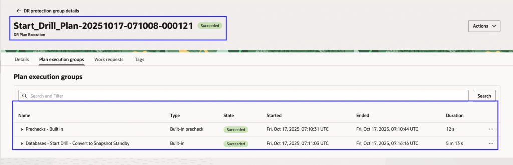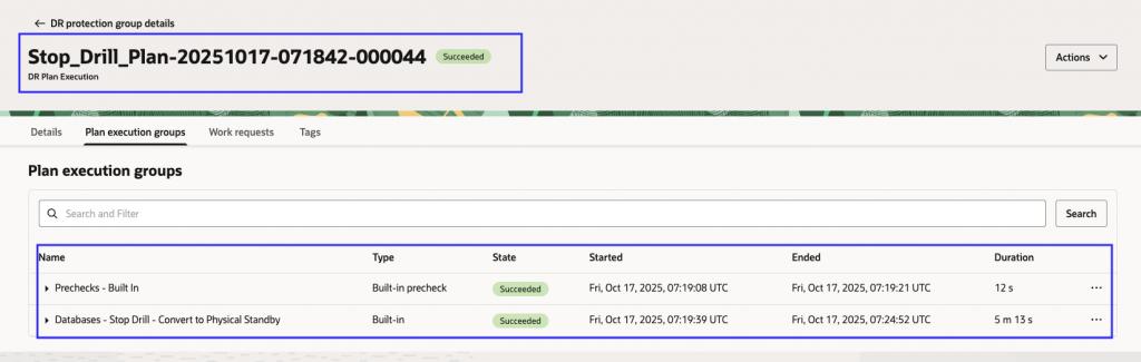 Recently, the Exadata Database Service on Dedicated Infrastructure (ExaDB-D) and Exadata Database Service on Cloud@Customer (ExaDB-C@C) service introduced APIs to convert the database roles from physical standby database to snapshot standby and snapshot standby to physical standby. OCI Full Stack DR now leverages these APIs to automatically create built-in plan groups when creating Start Drill and Stop Drill plans for ExaDB-D and ExaDB-C@C environments.