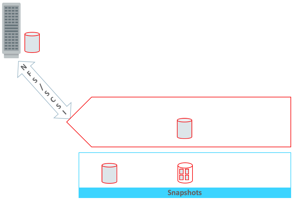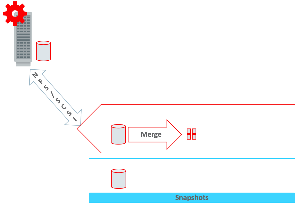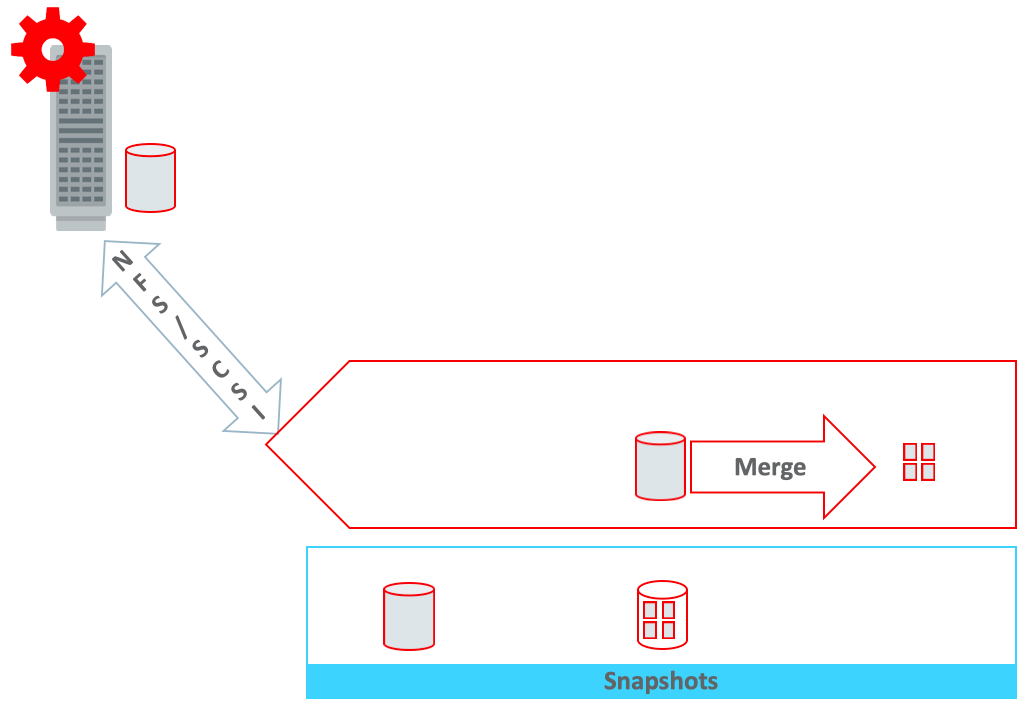 1. Complex Recovery Procedure. CDM products are designed for..surprise..Copy Data Management, i.e. point-in-time data copies for test/dev/non-production use. For Oracle databases, these products utilize Recovery Manager (RMAN) image copies – typically written to NFS mounted CDM storage – to establish the base image, followed by storage snapshot operation. This second-tier storage is distinct from production storage with lower IOPS and bandwidth characteristics. The next day, an incremental backup is performed and merged back into the copy to create an updated base image..this is then followed by another snapshot operation, then incremental backup + merge and so on, as shown below.