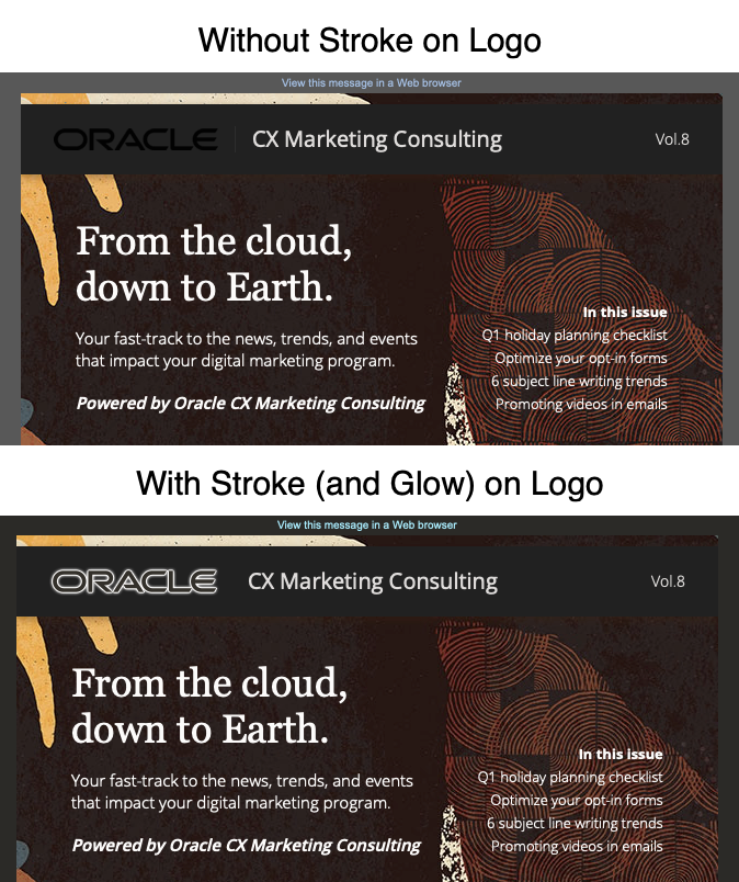 You can see the effect that adding a 1 pt. stroke—plus glow—to our logo had on the Oracle Digital Experience Agency newsletter.
