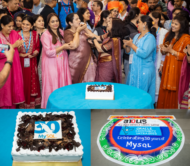 July marked a vibrant tour throughout India organized by AIOUG, covering six cities as Hyderabad, Bengaluru, Pune, Mumbai Gurugram and Chennai. Each city hosted MySQL technical keynotes and celebratory blocks featuring anniversary cakes, fostering a spirit of togetherness and learning within the Oracle User Group community.