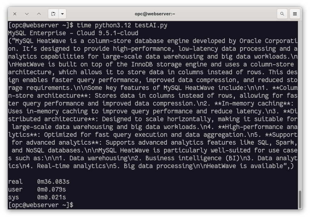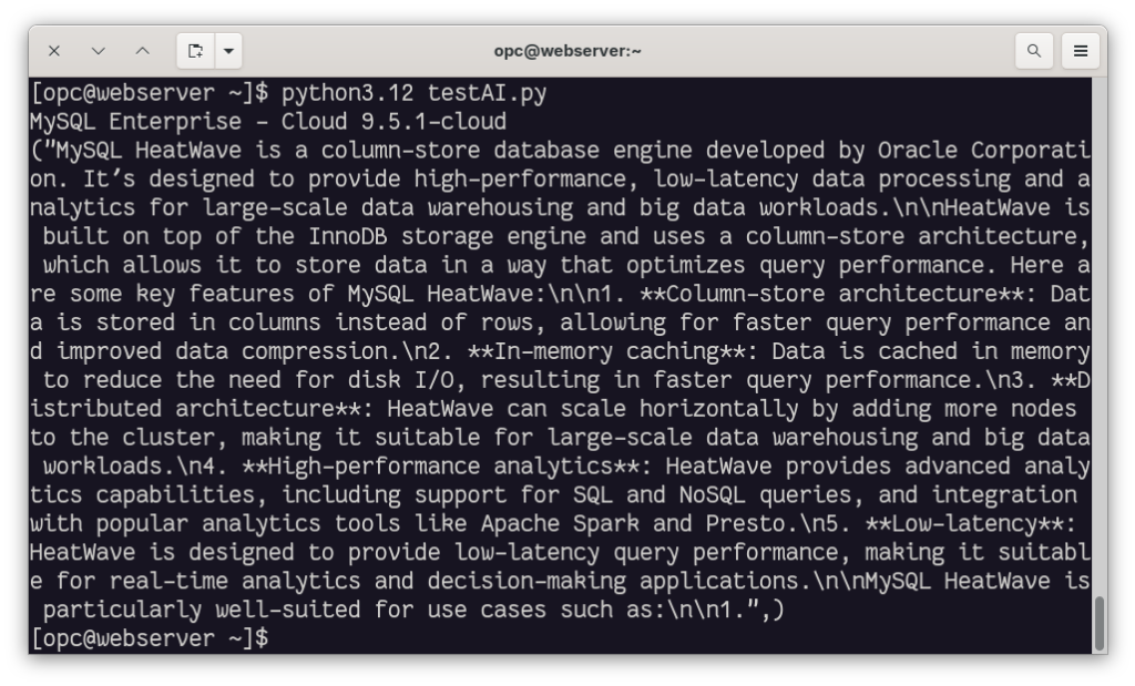 Now, let’s modify our previous Python script to use HeatWave GenAI: