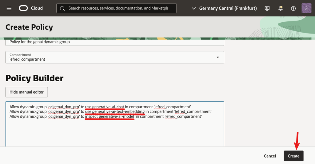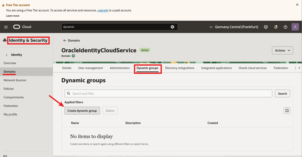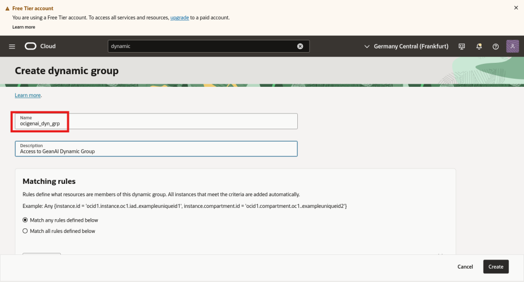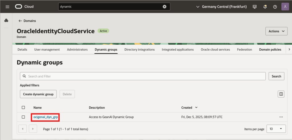 We now need to create a dynamic group to which we will provide access to the GenAI Service: