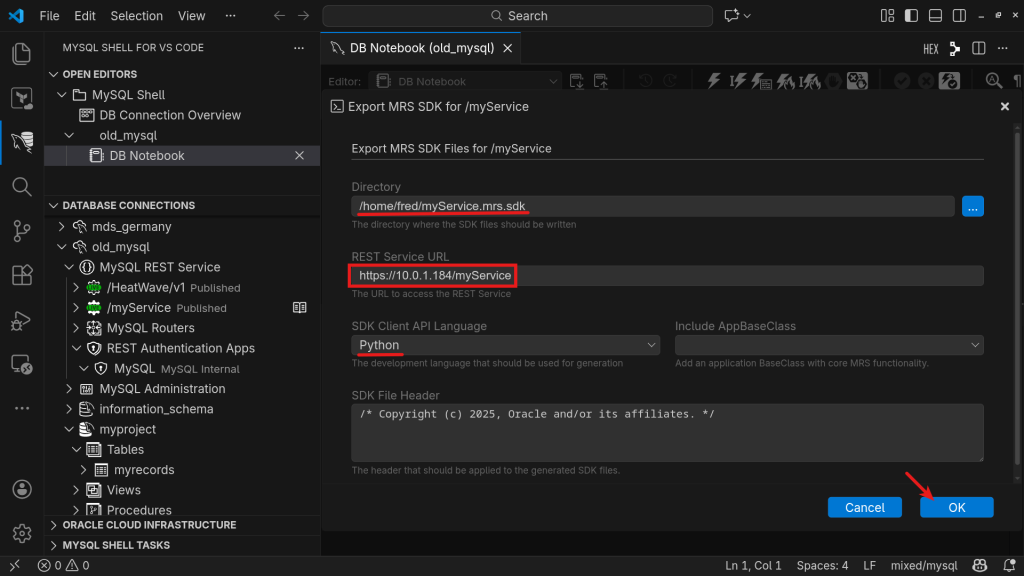 With the MySQL REST Service deployed by the starter kit, you’ve seen how easy it is to expose data from MySQL HeatWave without writing a single line of SQL in your application. Starting from a simple table in your database, you granted the proper privileges, published the schema to MRS, and accessed it securely over HTTPS – first with plain curl, then with a generated Python SDK.
