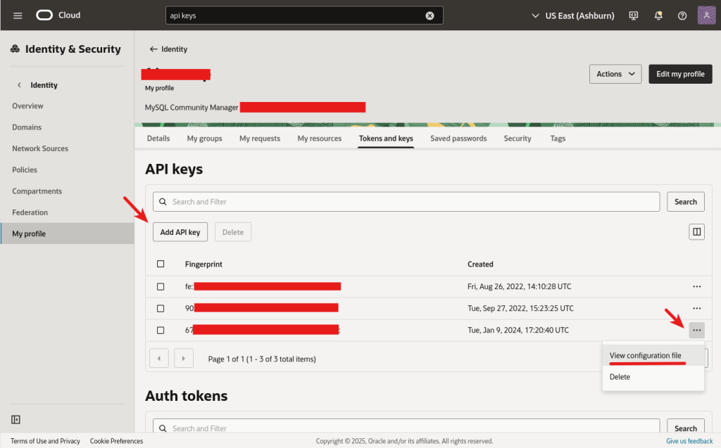 Don’t forget to update the key_file entry in the .oci/config file to match the API_PRIVATE_KEY path, such as/home/opc/my_priv.pem.