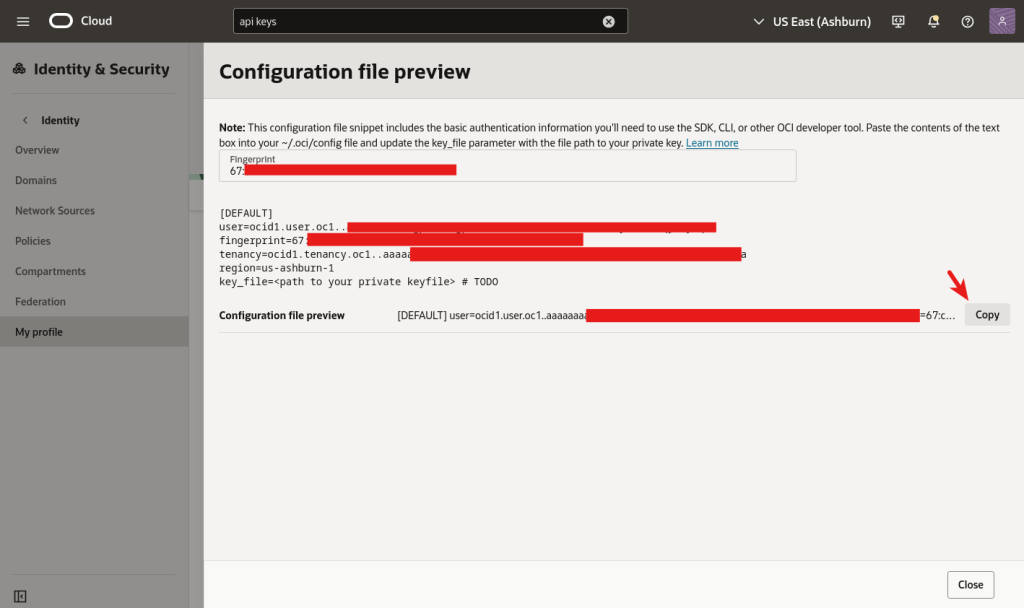 To access the Gen AI Services on OCI, we need to provide some information to enable access. The easiest way is to generate an OCI config file.