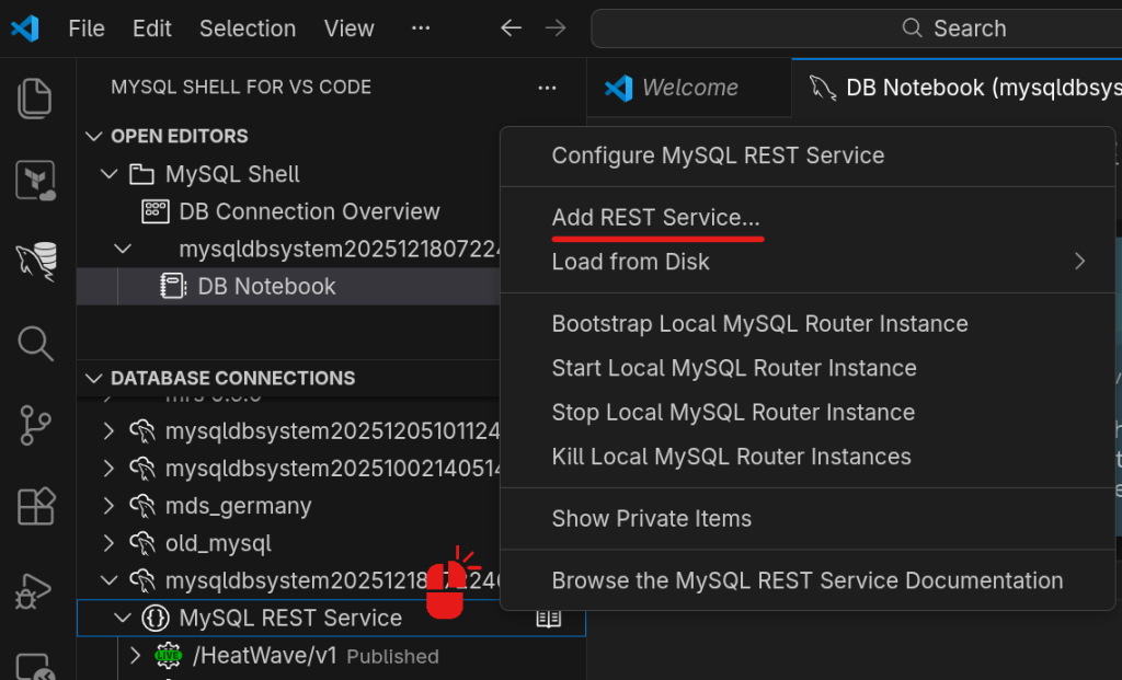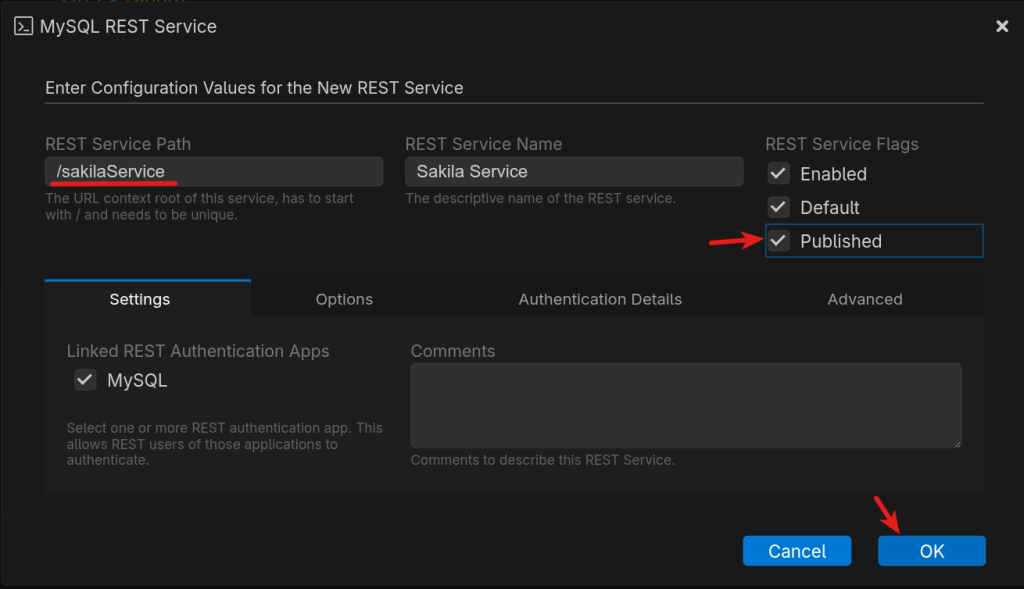 In the mrs section, the URL must match the MySQL HeatWave DB System’s IP and the service path we created. In my case it should be: