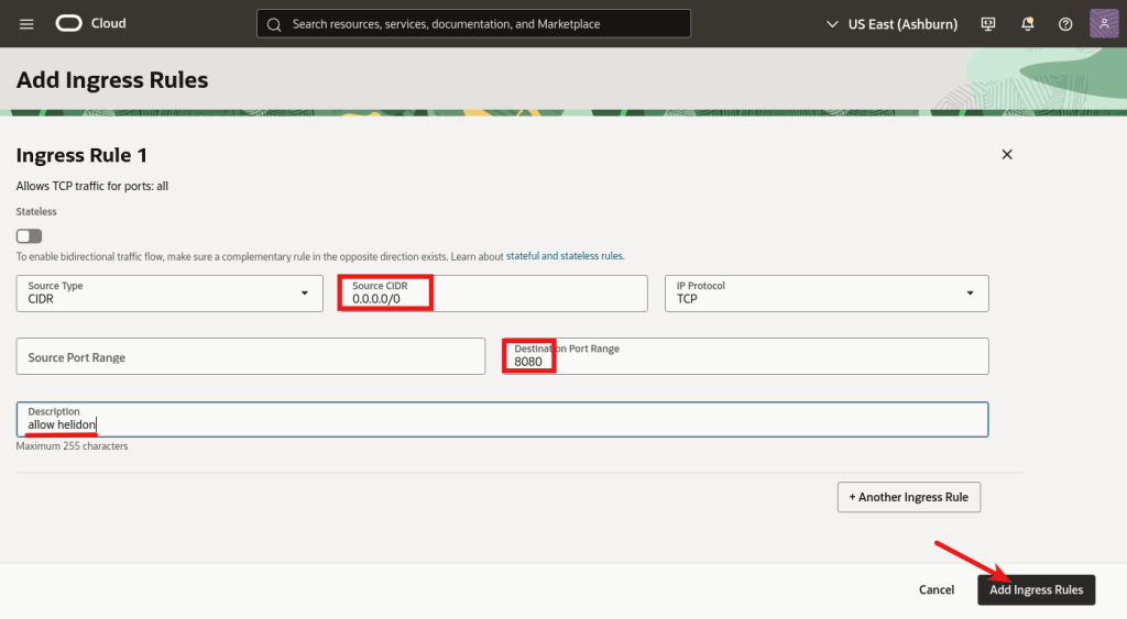 We have allowed access in OCI, now we also will enable access into the compute instance’s local firewall: