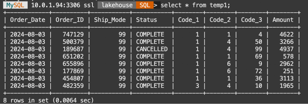 SQL> CREATE TABLE `lakehouse`.`t10`